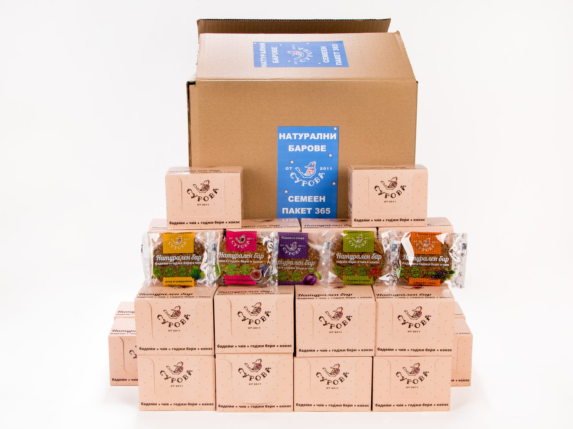 „Семеен пакет 365“ представлява кутия с 365 индивидуално опаковани натурални барчета, произведени от нас, който покрива нуждите на цялото семейство.